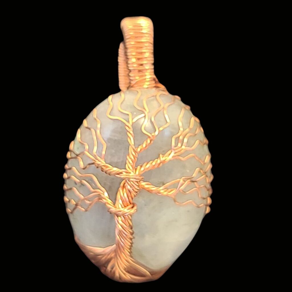 Labradorite cabochon stone wrapped with a copper tree of life. All tree of life pendants will come with an adjustable cord. The cabochons are 22mm x 30mm.