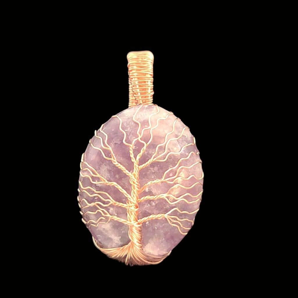 Lepidolite wrapped with a copper tree of life. All tree of life pendants will come with an adjustable cord. This large tree of life pendant is approximately 30mm x 40mm.