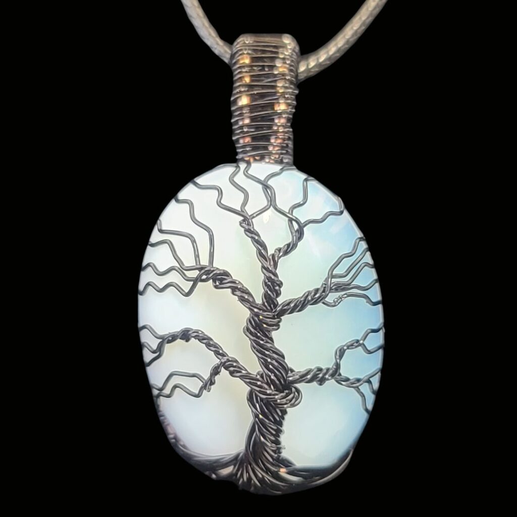 Opalite cabochon stone wrapped with a black tree of life. All tree of life pendants will come with an adjustable cord. The cabochons are 22mm x 30mm.