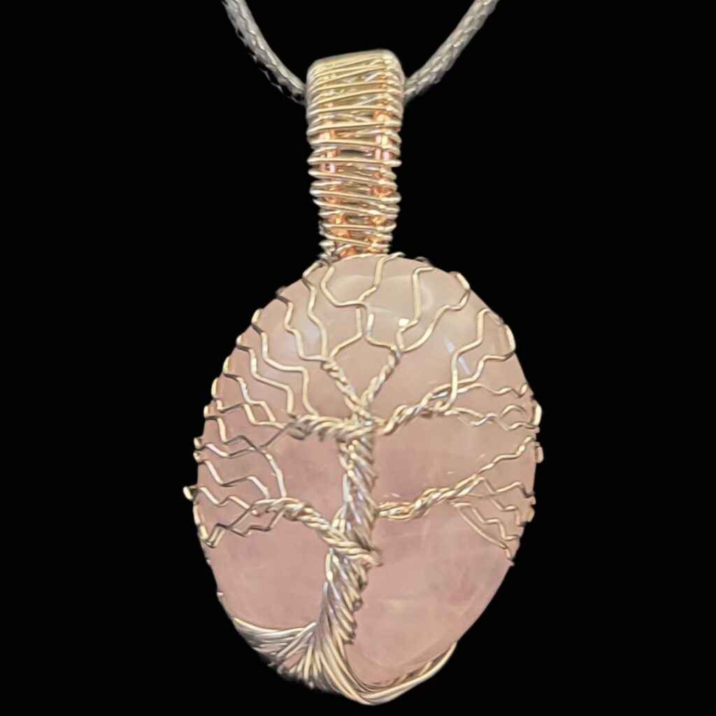 Rose Quartz with Silver Tree of Life, small