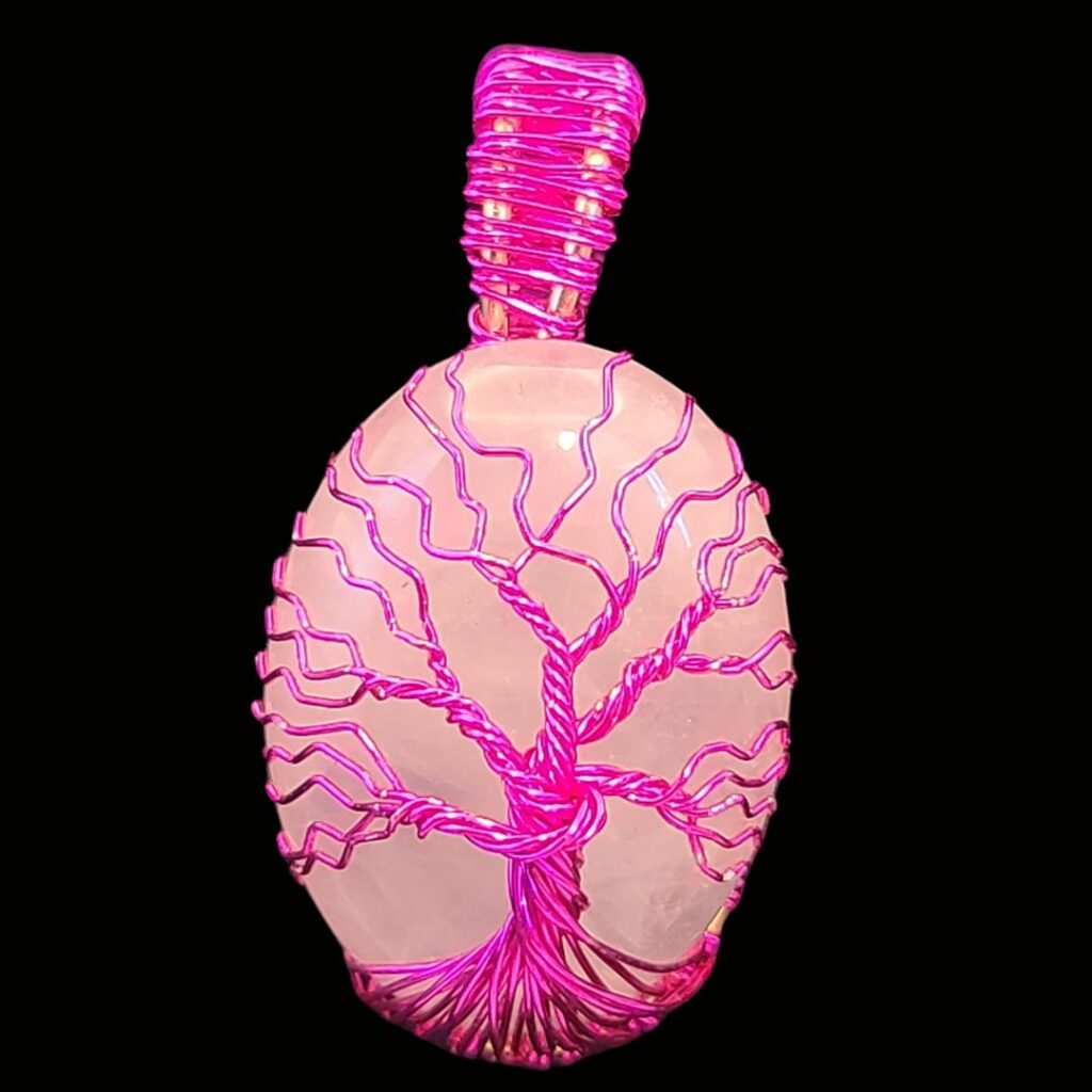 Rose Quartz with Hot Pink Tree of Life, small