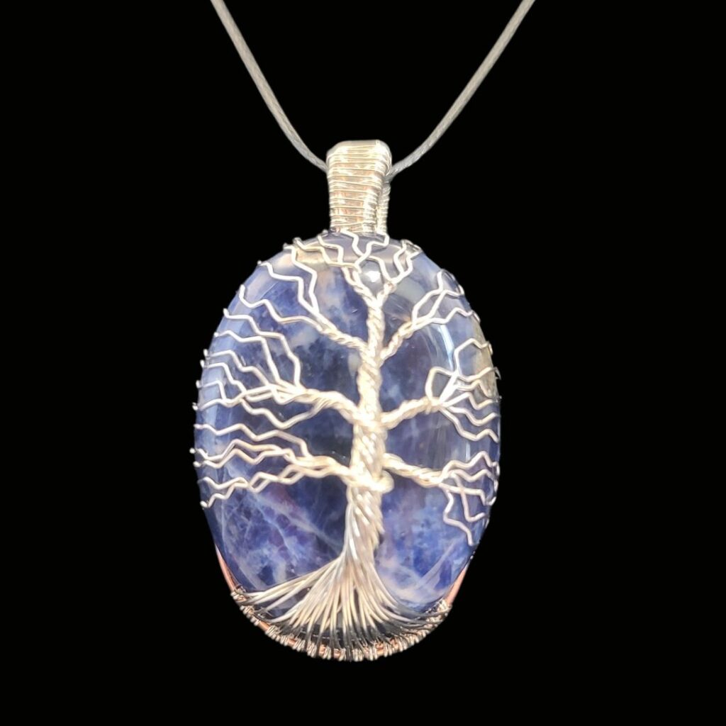 Sodalite with Silver Tree of Life Wrapped Stone, large