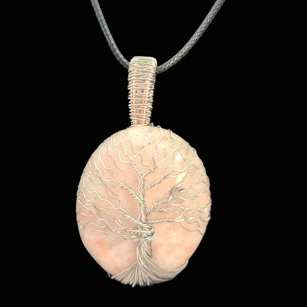 Sunstone stone wrapped with a silver tree of life. All tree of life pendants will come with an adjustable cord. The large tree of life pendants are approximately 35mm x 45mm.