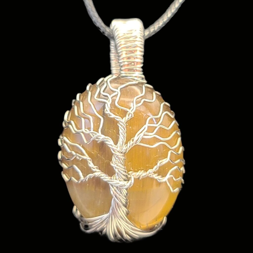 Tiger Eye cabochon stone wrapped with a silver tree of life. All tree of life pendants will come with an adjustable cord. The cabochons are 22mm x 30mm.