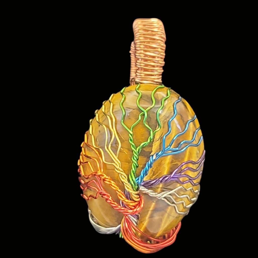 Tiger Eye cabochon stone wrapped with a chakra tree of life. All tree of life pendants will come with an adjustable cord. The cabochons are 22mm x 30mm.