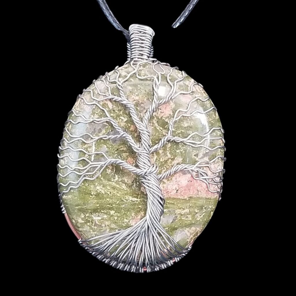 Unakite stone wrapped with a silver tree of life. All tree of life pendants will come with an adjustable cord. The large tree of life pendants are approximately 35mm x 45mm.