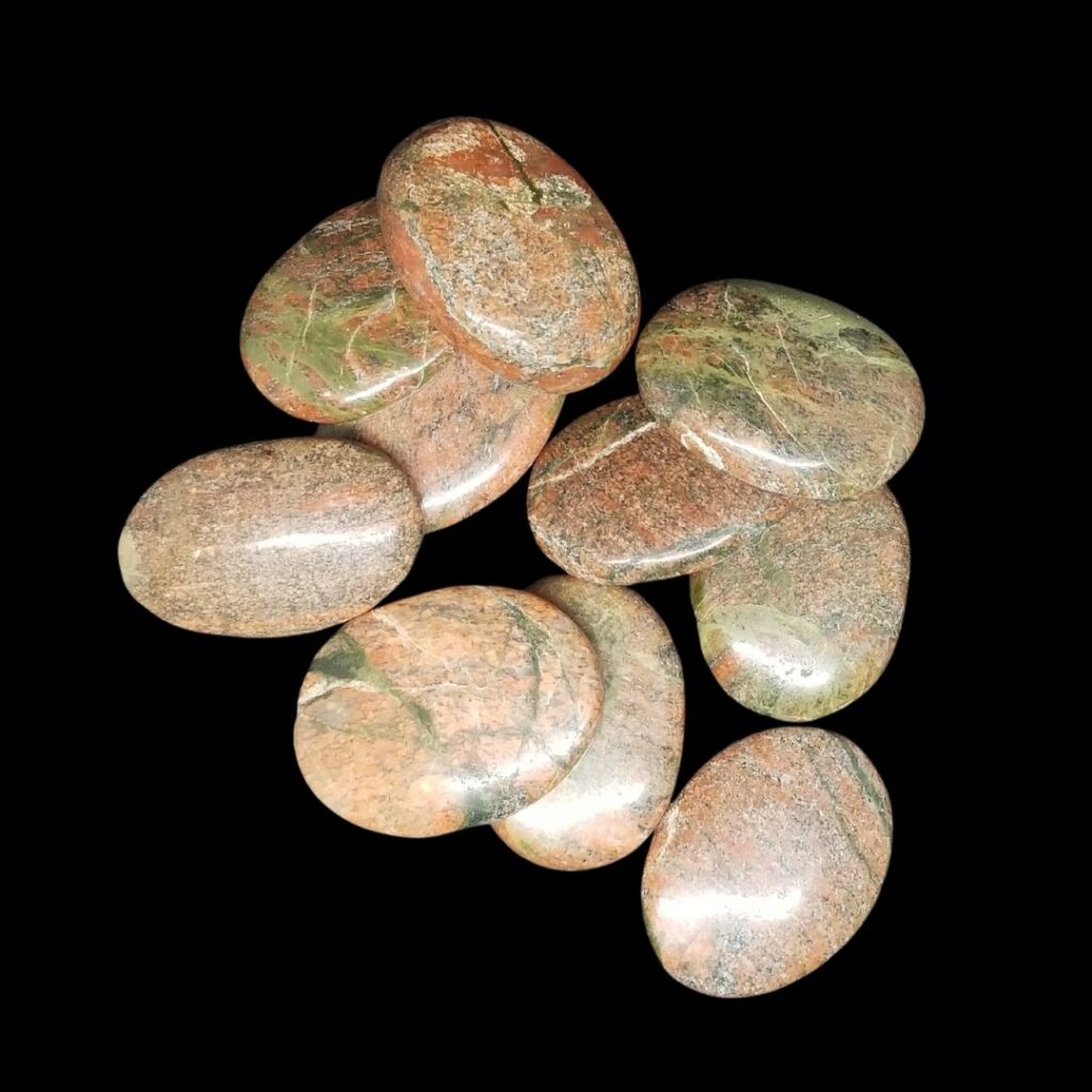 Unakite is a great stone grounding, guidance, animal magic, negativity, optimism, peace, personal power, self-work, transformation. It is a wonderful stone for reproductive health, balancing emotions and nurturing the bond between mother and child.